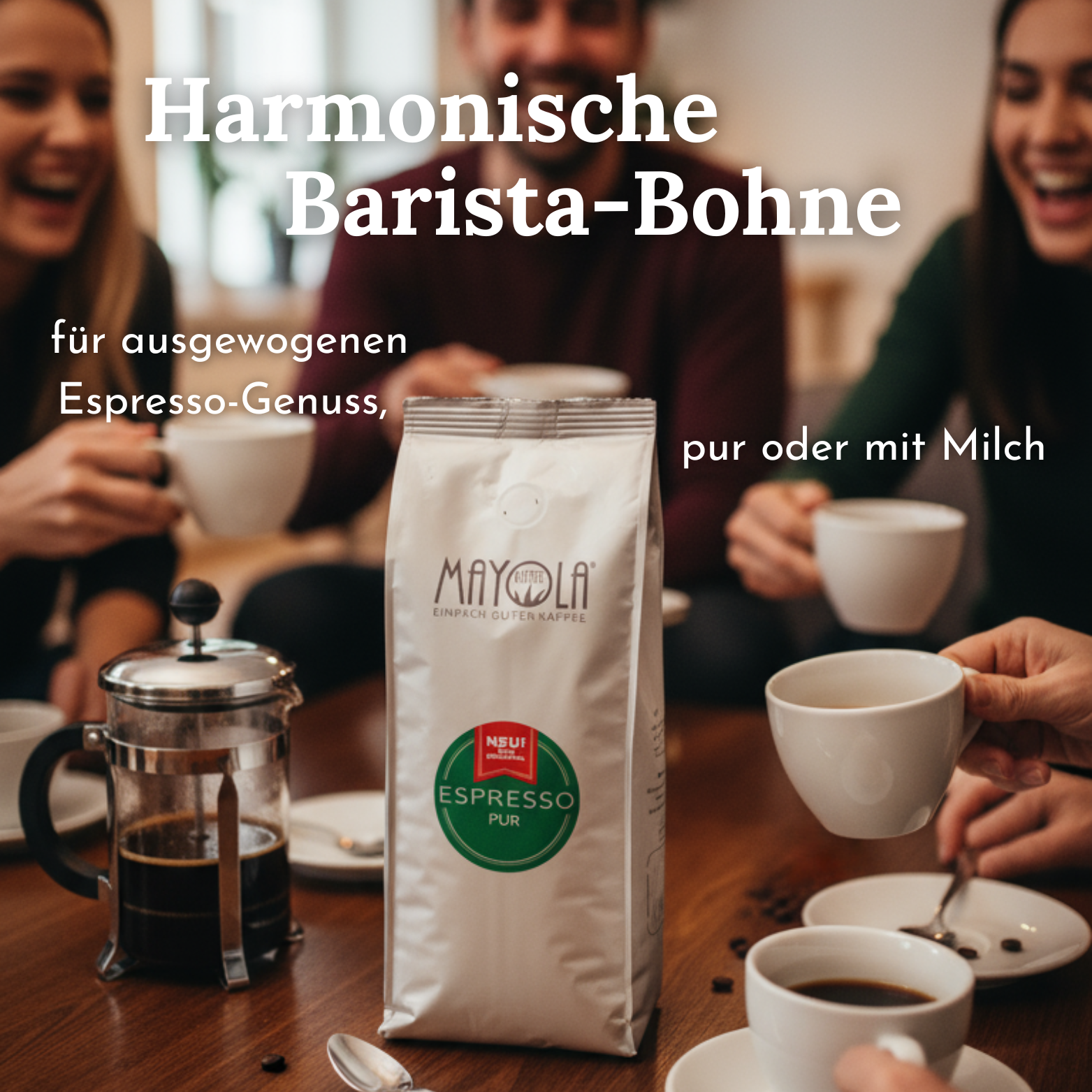 Espresso – Ganze Kaffeebohnen mit exzellentem Geschmack. Fair gehandelt, handverlesen und mit Sorgfalt in der Trommel langzeitgeröstet.