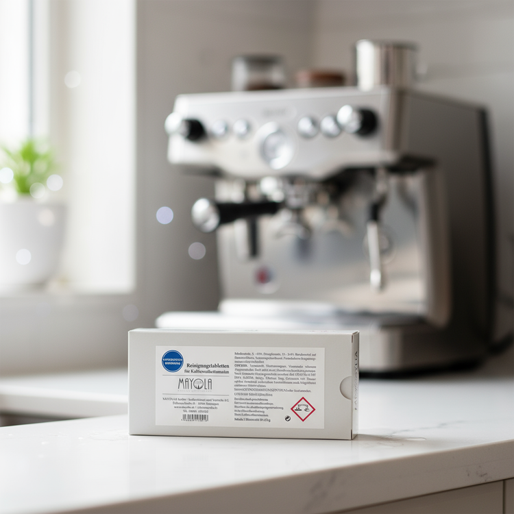 Mit den Reinigungstabs von Mayola reinigen Sie Ihren Kaffeevollautomaten gründlich, schnell und sicher – ganz ohne Aufwand. Die kraftvolle Tablette entfernt zuverlässig Kaffeeöle, Fette und Rückstände aus Brühgruppe und Leitungen und sorgt so für konstanten Kaffeegenuss und verlängerte Gerätelebensdauer.